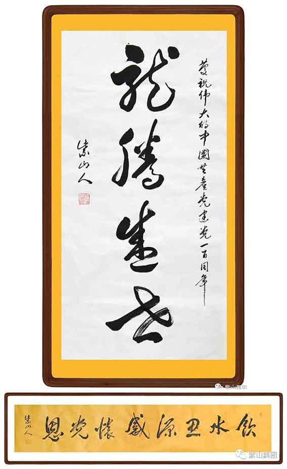 百年禮贊 丹心頌黨。在中國(guó)共產(chǎn)黨迎來百年華誕之際,紫山集團(tuán)董事長(zhǎng)洪長(zhǎng)水揮毫潑墨,寫下了《奮斗百年路 啟航新征程》、《風(fēng)華正茂》、《永遠(yuǎn)跟黨走 奮進(jìn)新征程》、《飲水思源 感懷黨恩》、《讓人民吃得放心》、《幸福是奮斗出來的》、《為社會(huì)提供安全、健康、放心食品》等佳作,謳歌黨的百年奮斗歷程,抒發(fā)對(duì)黨的愛戴和敬仰之情,表達(dá)了永遠(yuǎn)跟黨走,開啟新征程的堅(jiān)定意志。